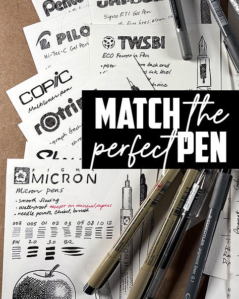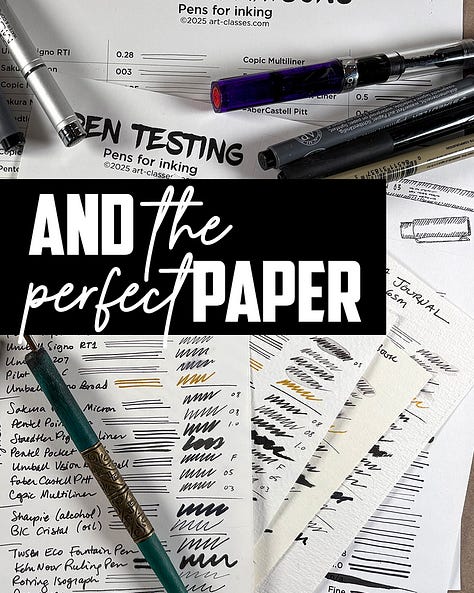 While testing I created “swatch cards” for each one - making my notes on them and trying out some shading with each one. I’ve collected all that into a Drawing Papers and Pens Reference Pack, along with the nib comparisons and things I created in this video. I know some of you love that kind of thing, and since I had them all done, I thought I’d see if it’ll help others too.